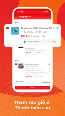Airpaz hiểu rằng sự tiện lợi là chìa khóa. Ứng dụng cung cấp đa dạng phương thức thanh toán an toàn và linh hoạt, hỗ trợ hơn 60 loại tiền tệ, bao gồm thẻ tín dụng, ví điện tử, ngân hàng trực tuyến, và cả các tùy chọn PayLater. Với quy trình đặt chỗ liền mạch, khả năng lưu và so sánh các lựa chọn trong giỏ hàng, cùng tính năng tự phục vụ để lên lịch lại hay yêu cầu hoàn tiền, việc lập kế hoạch du lịch của bạn chưa bao giờ dễ dàng đến thế. Đội ngũ Chăm sóc Khách hàng đa ngôn ngữ của chúng tôi luôn sẵn sàng hỗ trợ 24/7, đảm bảo mọi chuyến đi của bạn luôn suôn sẻ và đáng nhớ.