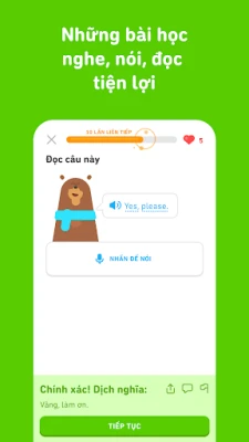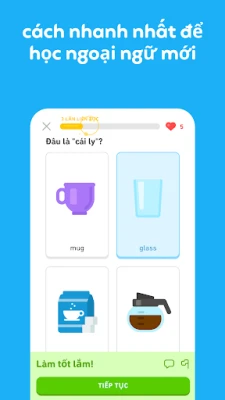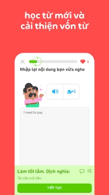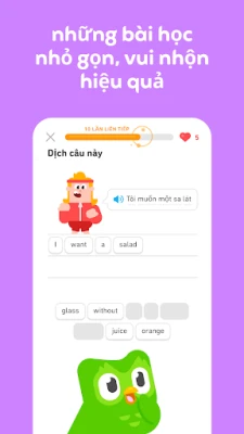 Duolingo nổi bật bởi sự kết hợp hoàn hảo giữa niềm vui và hiệu quả. Các bài học được thiết kế theo phong cách trò chơi tương tác, cùng những nhân vật hoạt hình sống động, không chỉ mang lại trải nghiệm giải trí mà còn củng cố vững chắc các kỹ năng nghe, nói, đọc và viết của bạn. Nền tảng sư phạm khoa học đã được kiểm chứng, do các chuyên gia ngôn ngữ hàng đầu thiết kế, đảm bảo kiến thức bạn học được ghi nhớ lâu dài và áp dụng hiệu quả trong thực tế.