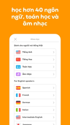 Khai phá tiềm năng ngôn ngữ của bạn cùng Duolingo, ứng dụng được xây dựng bởi các chuyên gia và tin dùng bởi hàng trăm triệu học viên trên khắp thế giới. Duolingo biến việc học ngôn ngữ thành một cuộc phiêu lưu thú vị, giúp bạn tự tin giao tiếp trong mọi tình huống, từ những chuyến du lịch khám phá đến việc nâng tầm sự nghiệp hay đơn giản là kết nối văn hóa. Dù mục tiêu của bạn là gì, từ tiếng Tây Ban Nha, Pháp, Trung, Ý, Đức, Anh đến vô vàn ngôn ngữ khác, Duolingo sẽ là người bạn đồng hành lý tưởng.
